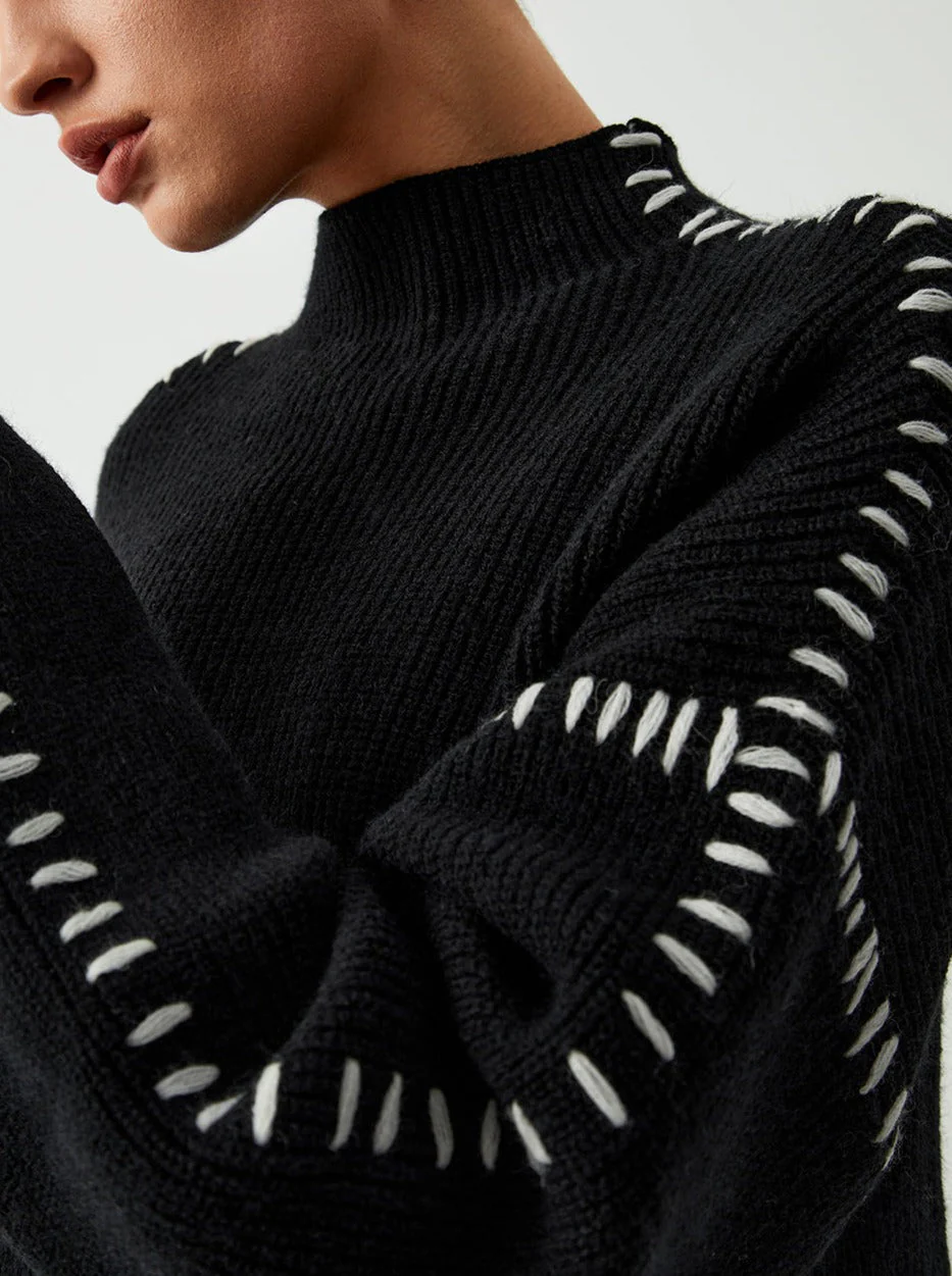 Are you looking for a versatile piece that combines elegance and comfort? The Model Knit Sweater is designed to meet your fashion needs while providing a chic layer for any occasion. With its unique contrast knits and slightly oversized fit, you can effortlessly achieve a sophisticated look without sacrificing comfort.